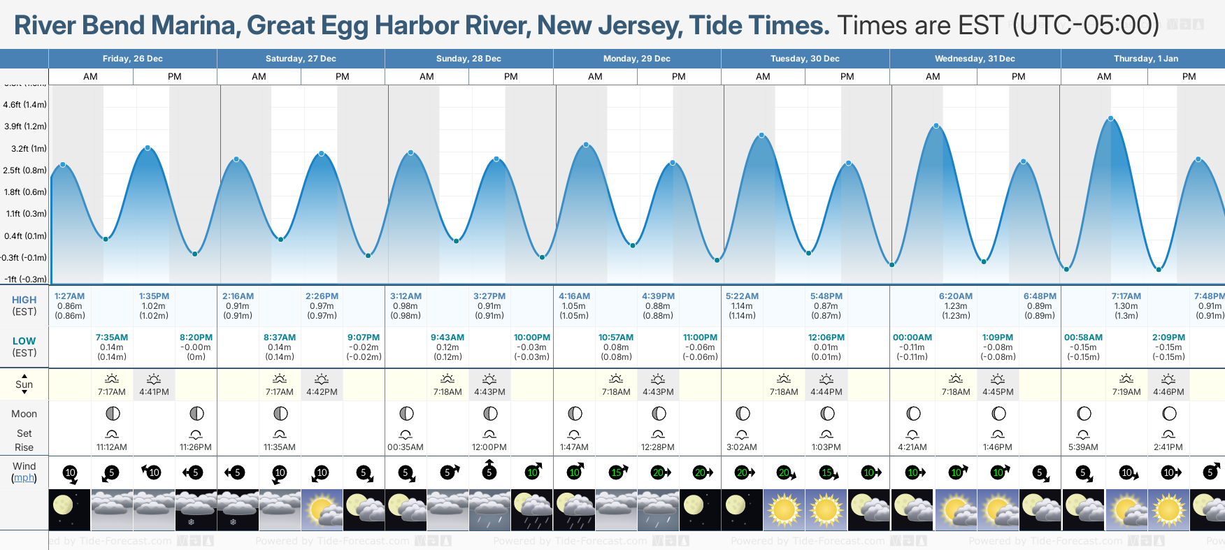 Today's tide times for River Bend Marina, Great Egg Harbor River: Friday 26 December 2025
