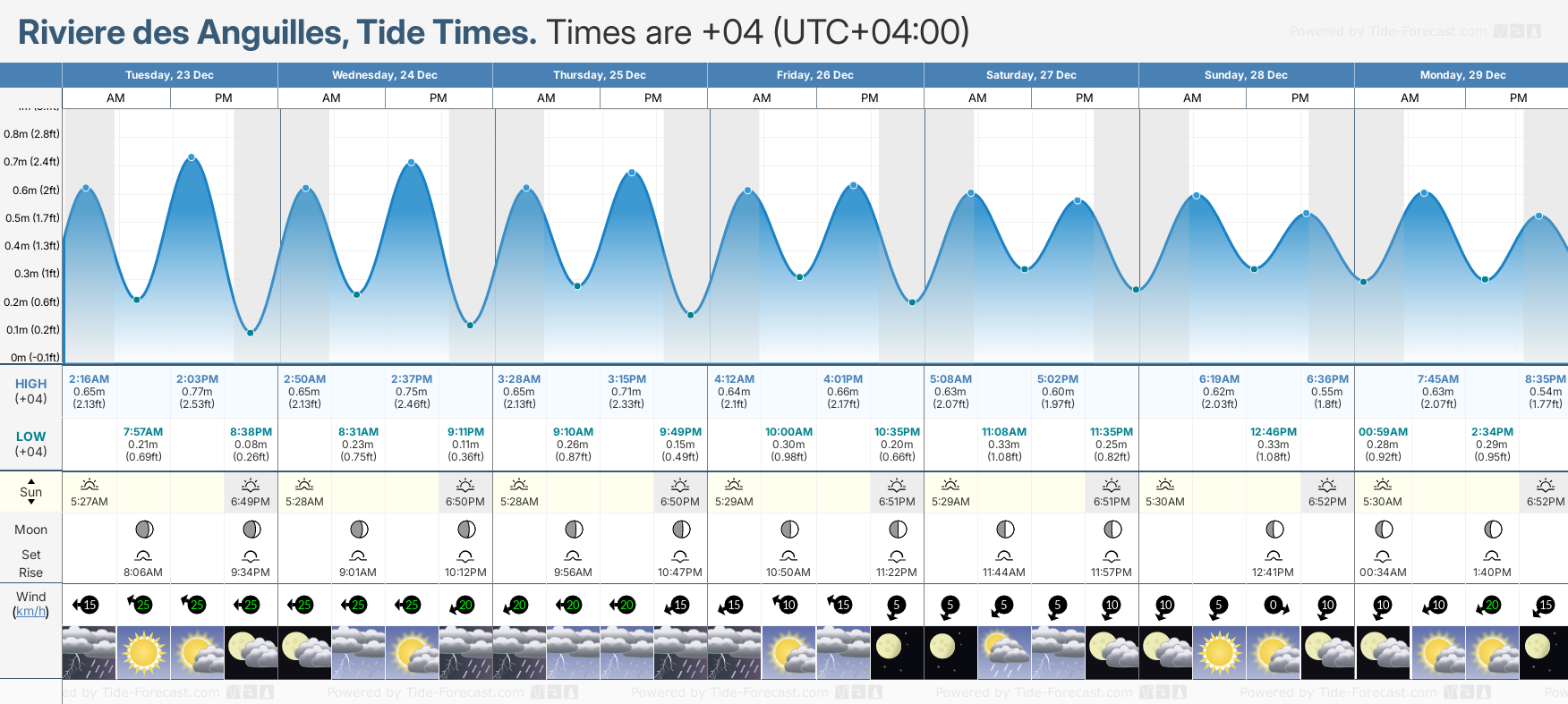 Tide Times for Riviere des Anguilles: Saturday 27 December 2025