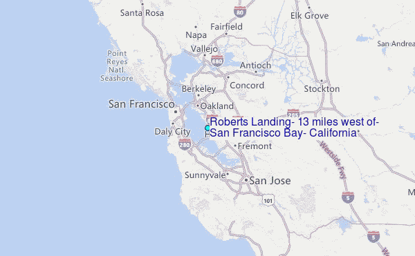 Use this relief map to navigate to tide stations, surf breaks and cities that are in the area of Roberts Landing, 1.3 miles west of, San Francisco Bay, California.
