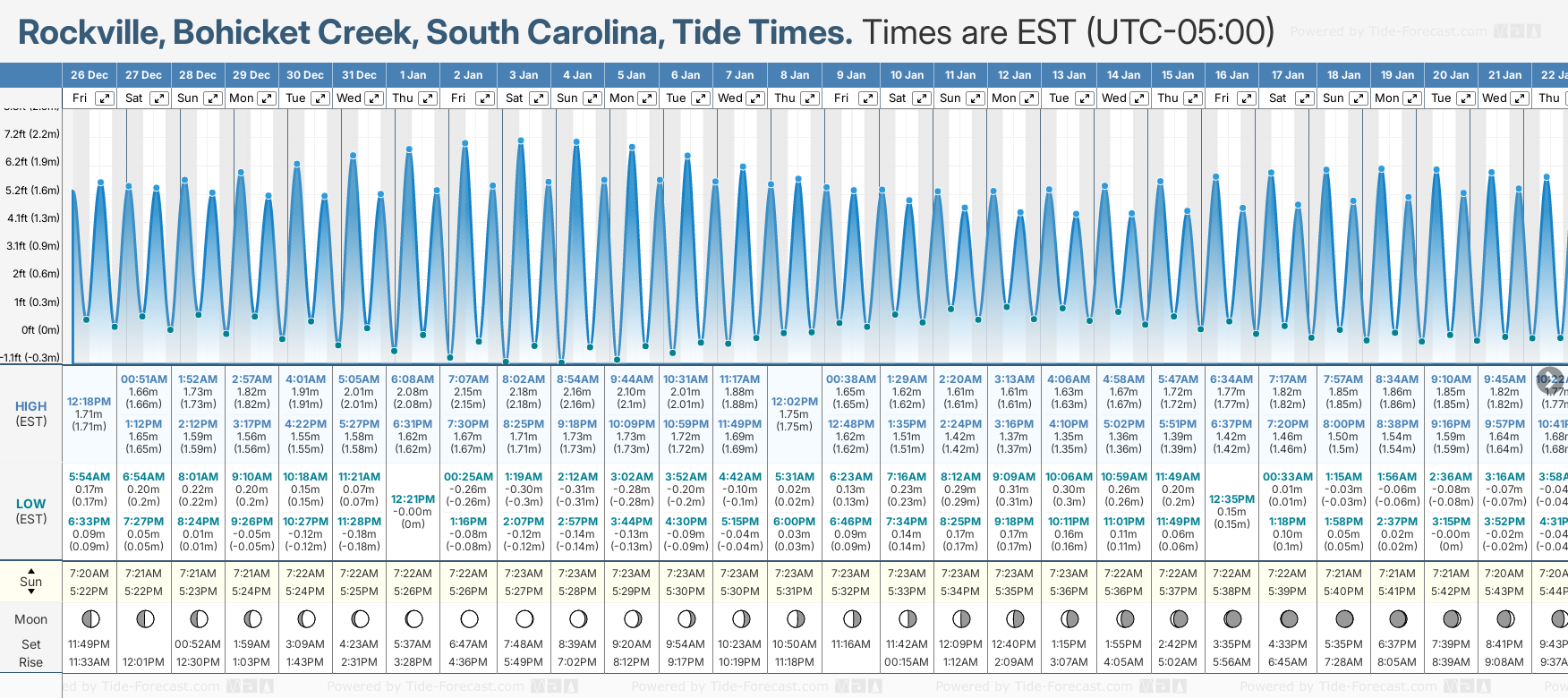 Today's tide times for Rockville, Bohicket Creek: Friday 26 December 2025