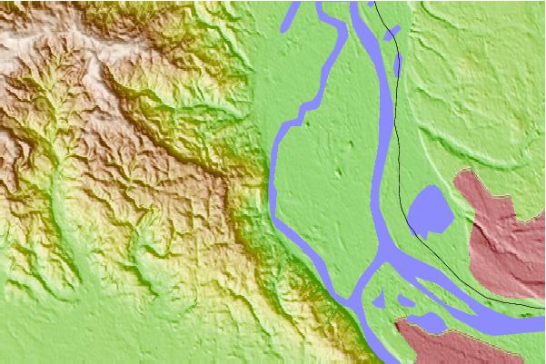 Use this relief map to navigate to tide stations, surf breaks and cities that are in the area of Rocky Point, Multnomah Channel, Oregon.