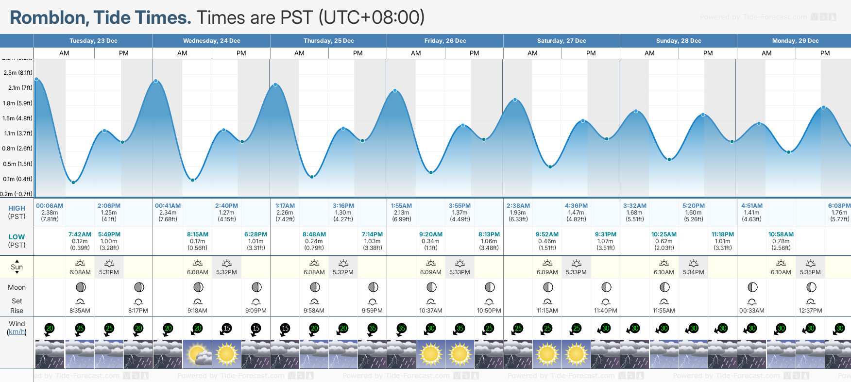 Today's tide times for Romblon: Wednesday 24 December 2025