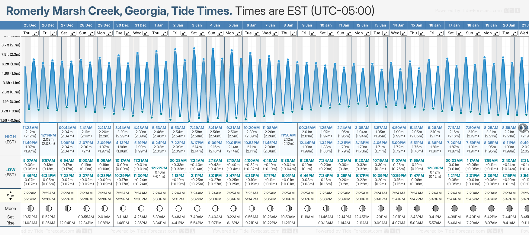 NOTE: Use of this site for Romerly Marsh Creek, Georgia tide times is subject to our terms.