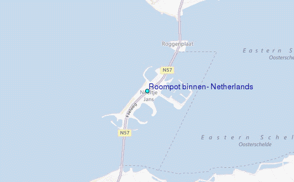 Use this relief map to navigate to tide stations, surf breaks and cities that are in the area of Roompot binnen, Netherlands.