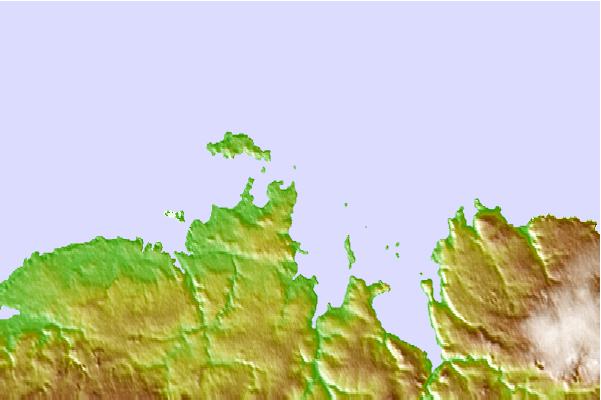 Use this relief map to navigate to tide stations, surf breaks and cities that are in the area of Roscoff, France.