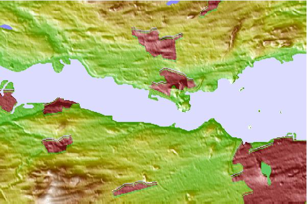 Use this relief map to navigate to tide stations, surf breaks and cities that are in the area of Rosyth, Scotland.