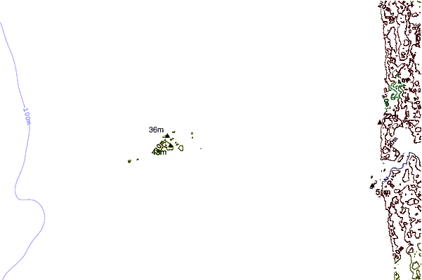 Use this relief map to navigate to tide stations, surf breaks and cities that are in the area of Rottnest Island, Australia.