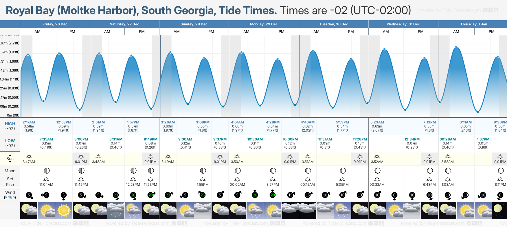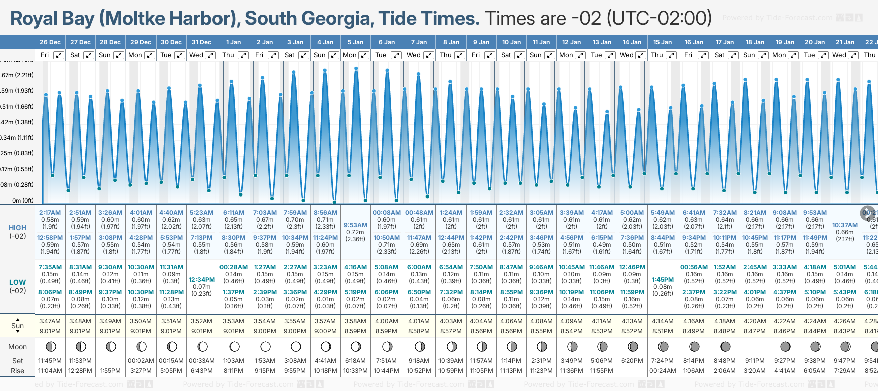 NOTE: Use of this site for Royal Bay (Moltke Harbor), South Georgia tide times is subject to our terms.