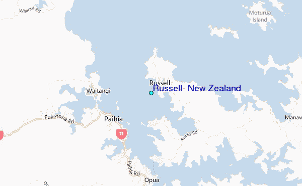 Use this relief map to navigate to tide stations, surf breaks and cities that are in the area of Russell, New Zealand.