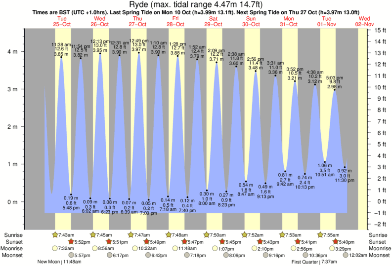 December and January Tide charts for Ryde: The tide charts below show the height, time and date of high and low tides for the next 30 days.