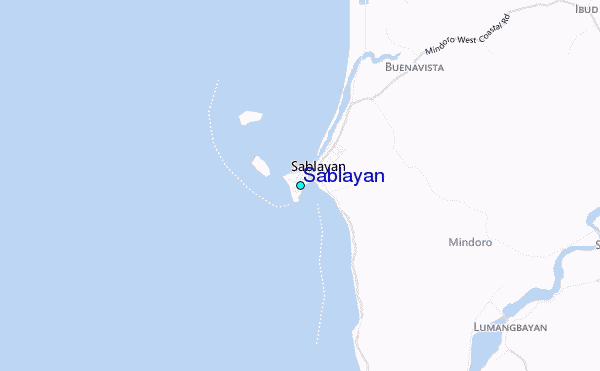 Use this relief map to navigate to tide stations, surf breaks and cities that are in the area of Sablayan.
