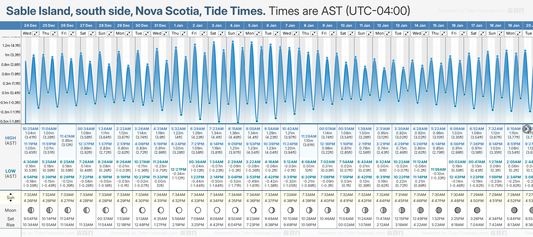 Sable Island, south side tide times for December and January