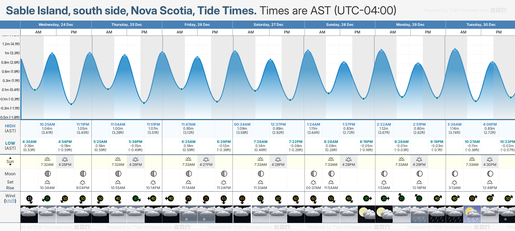 Tide Times for Sable Island, south side (tomorrow): Thursday 25 December 2025