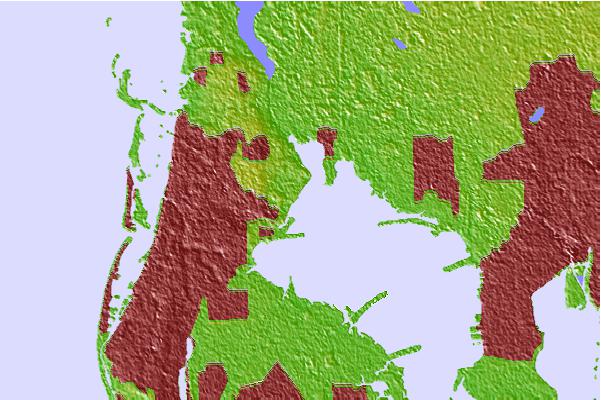 Use this relief map to navigate to tide stations, surf breaks and cities that are in the area of Safety Harbor, Old Tampa Bay, Tampa Bay, Florida.