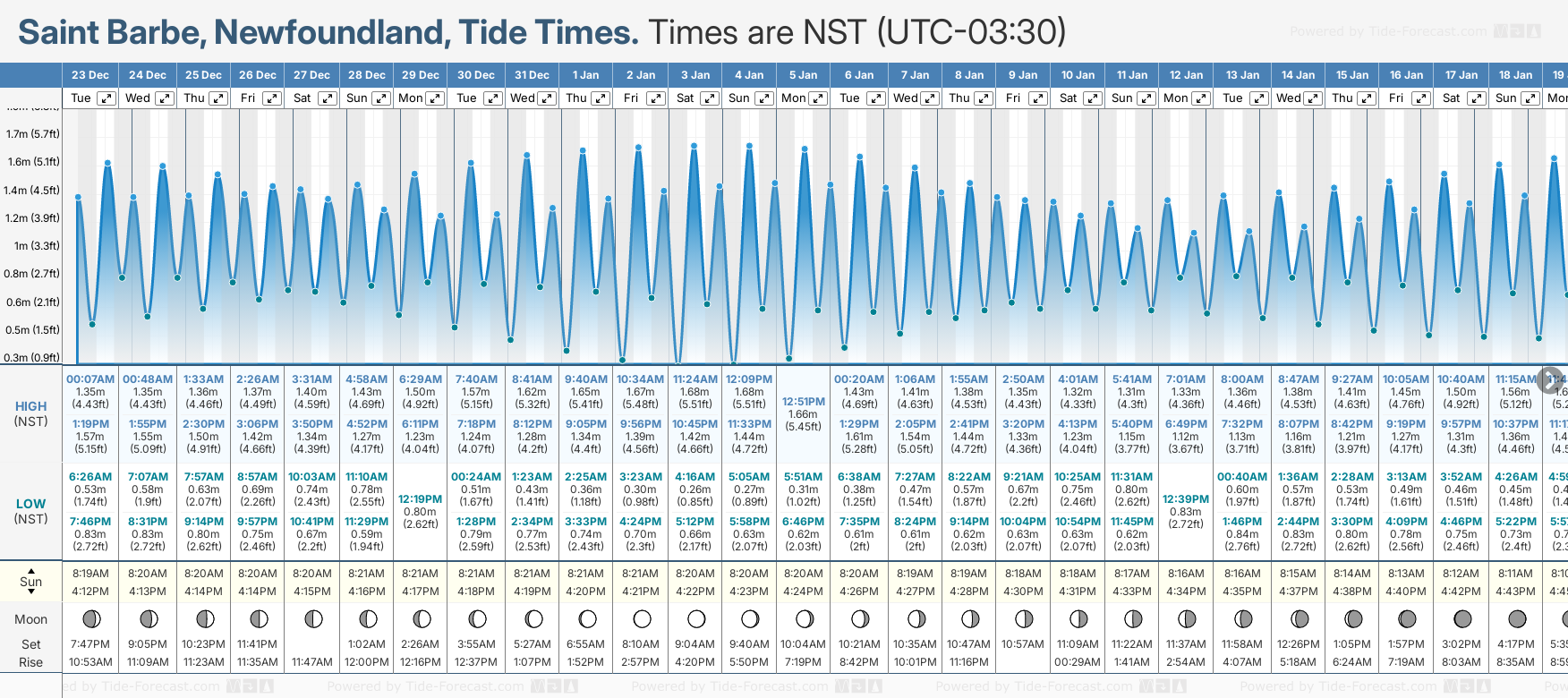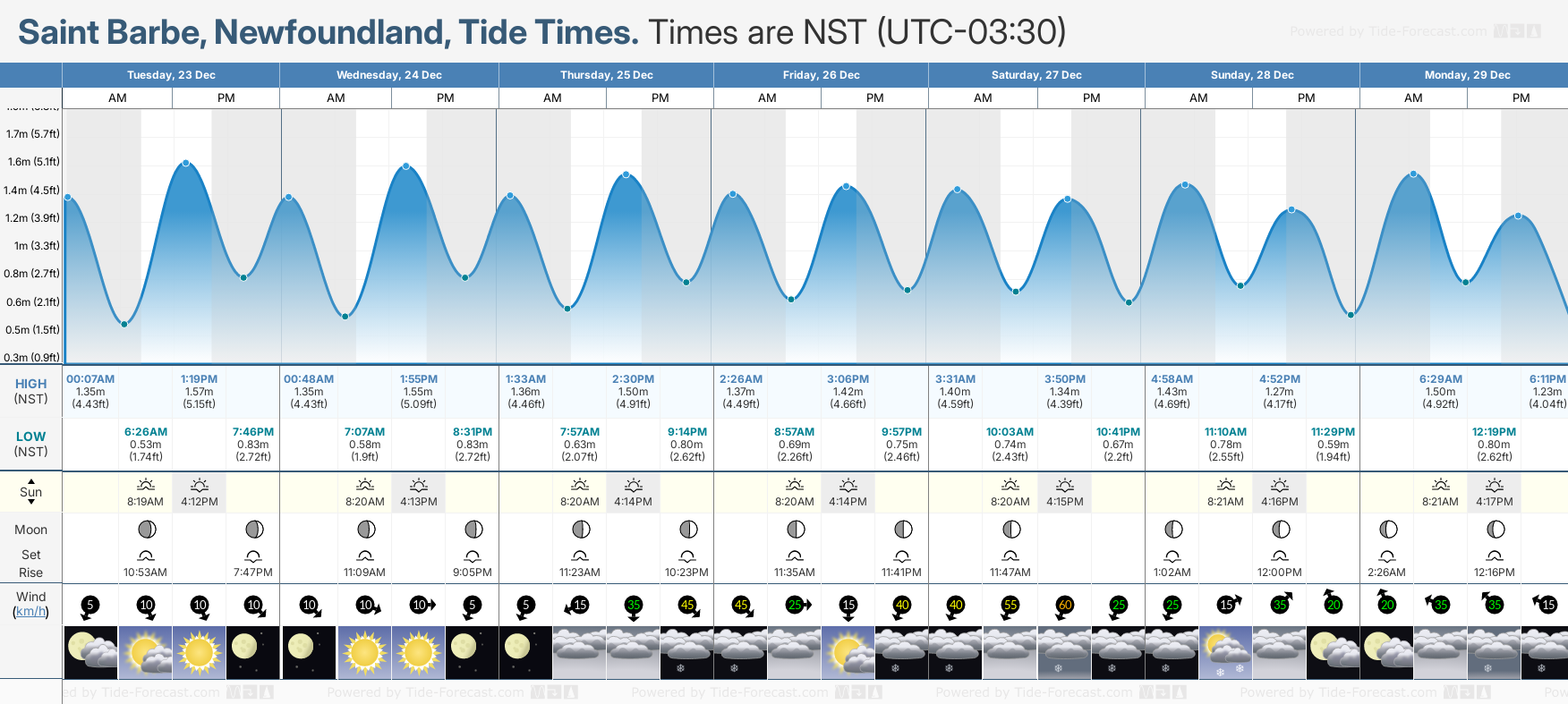 NOTE: Use of this site for Saint Barbe, Newfoundland tide times is subject to our terms.