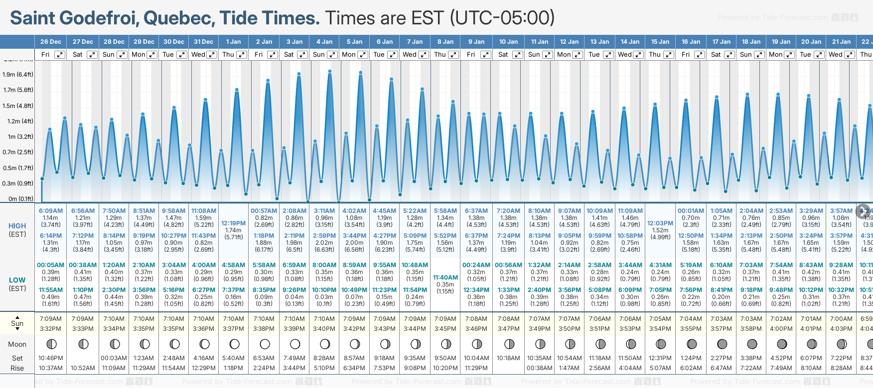 December and January Tide charts for Saint Godefroi: The tide charts below show the height, time and date of high and low tides for the next 30 days.