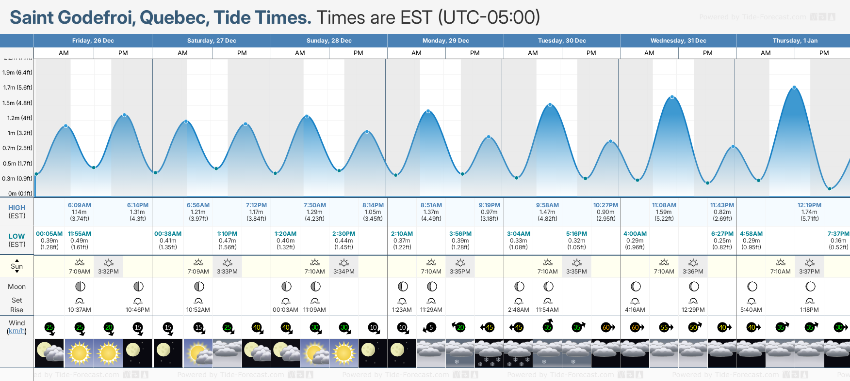 NOTE: Use of this site for Saint Godefroi, Quebec tide times is subject to our terms.