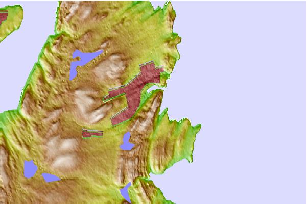 Use this relief map to navigate to tide stations, surf breaks and cities that are in the area of Saint John's Harbour, Newfoundland.