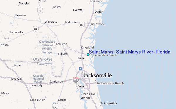 Use this relief map to navigate to tide stations, surf breaks and cities that are in the area of Saint Marys, Saint Marys River, Florida.