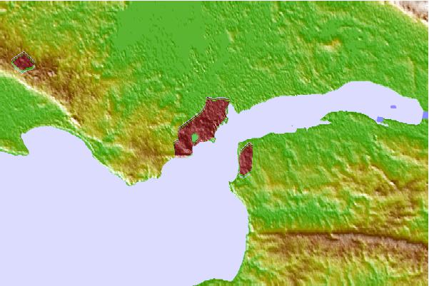 Use this relief map to navigate to tide stations, surf breaks and cities that are in the area of Saint Nazaire, France.