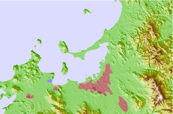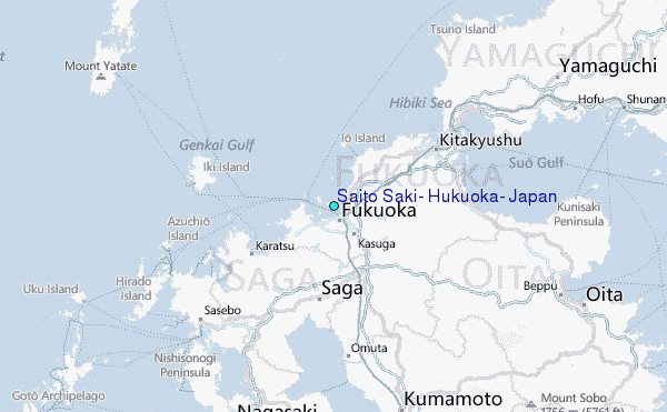 Use this relief map to navigate to tide stations, surf breaks and cities that are in the area of Saito Saki, Hukuoka, Japan.