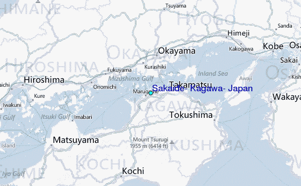 Use this relief map to navigate to tide stations, surf breaks and cities that are in the area of Sakaide, Kagawa, Japan.