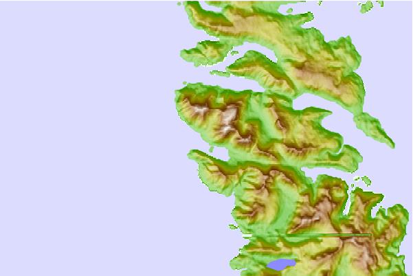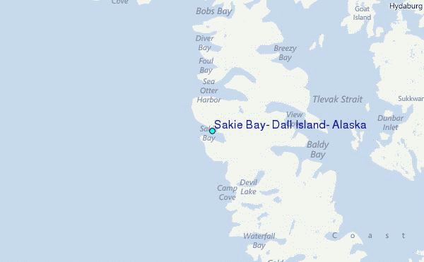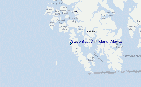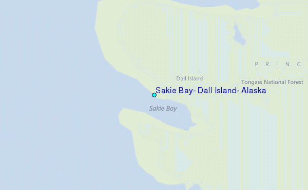 Use this relief map to navigate to tide stations, surf breaks and cities that are in the area of Sakie Bay, Dall Island, Alaska.