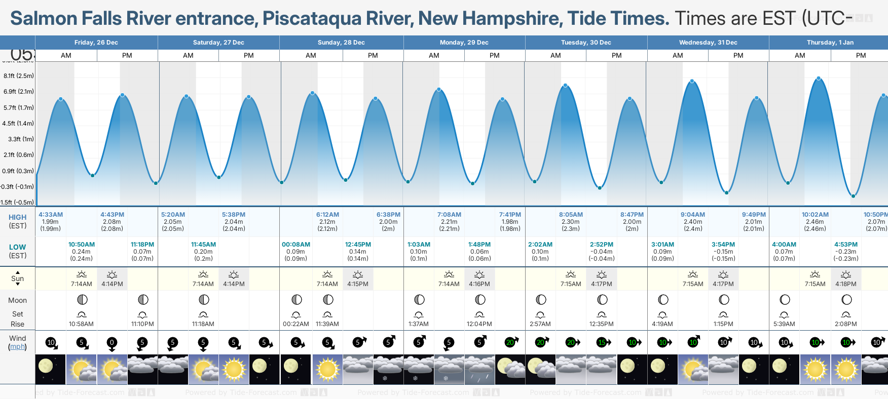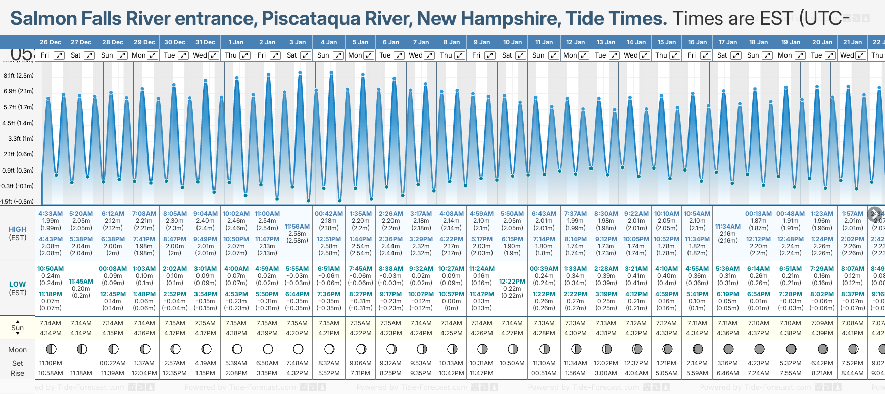 Tide Times for Salmon Falls River entrance, Piscataqua River: Sunday 28 December 2025