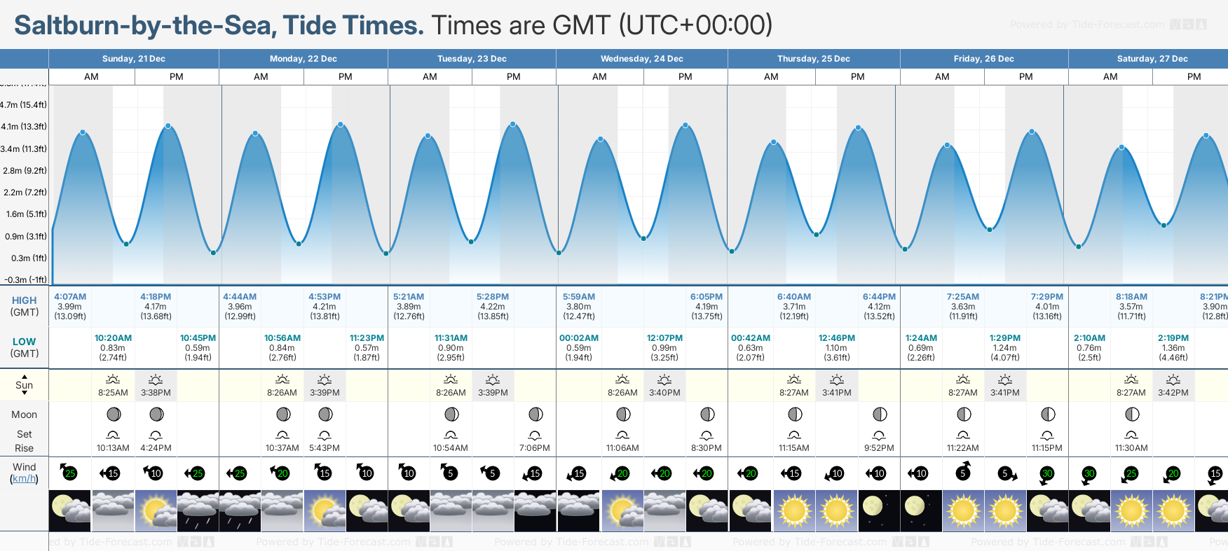 Tide Times for Saltburn-by-the-Sea (tomorrow): Sunday 21 December 2025