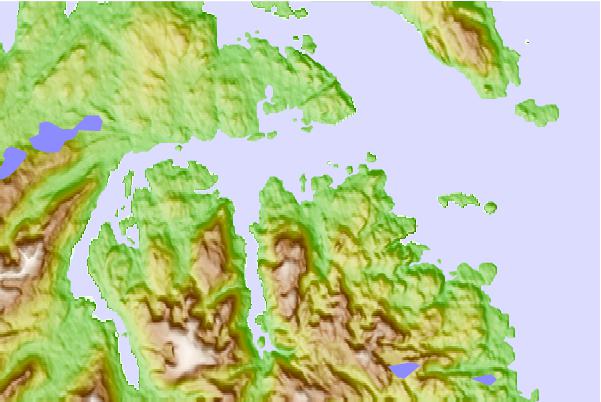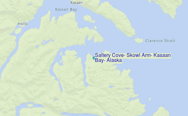 Use this relief map to navigate to tide stations, surf breaks and cities that are in the area of Saltery Cove, Skowl Arm, Kasaan Bay, Alaska.