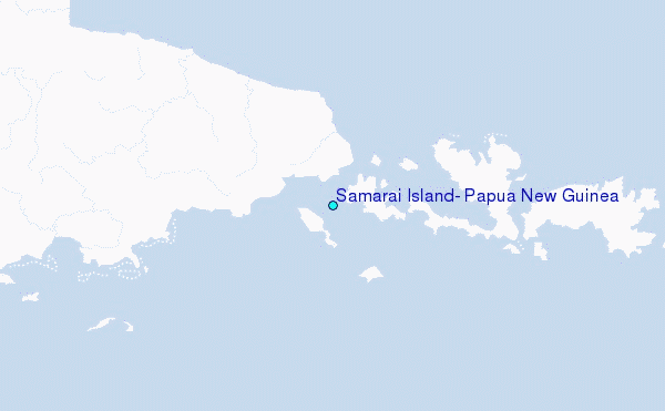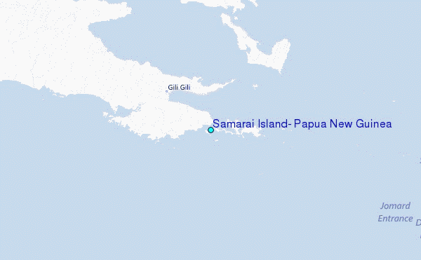 Use this relief map to navigate to tide stations, surf breaks and cities that are in the area of Samarai Island, Papua New Guinea.