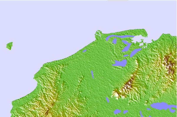 Use this relief map to navigate to tide stations, surf breaks and cities that are in the area of San Bernardo del Viento.