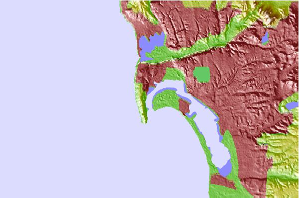 Use this relief map to navigate to tide stations, surf breaks and cities that are in the area of San Diego, Quarantine Station, California.
