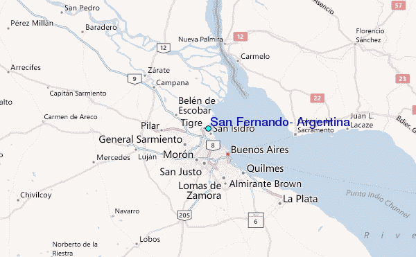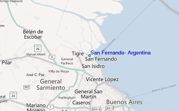 Other Nearby Locations' tide tables and tide charts to San Fernando, Argentina: