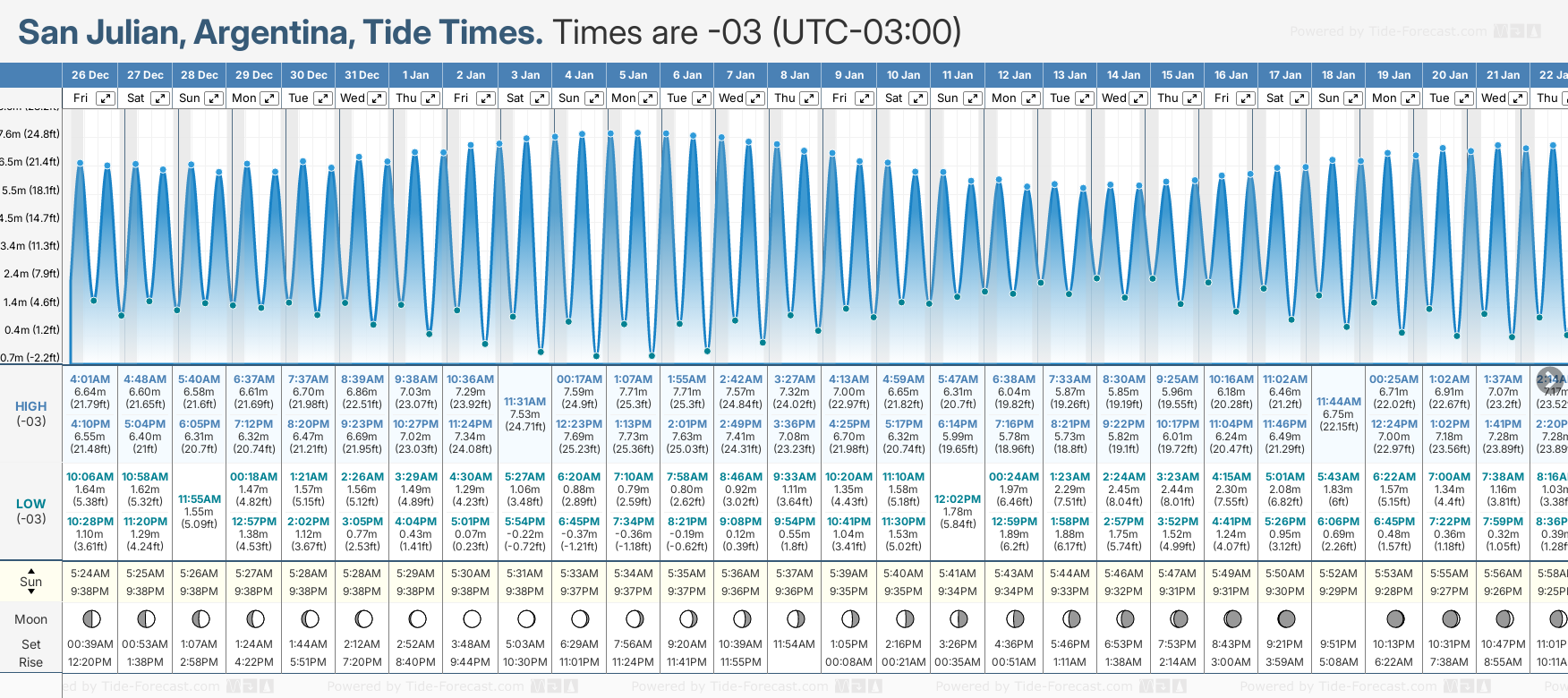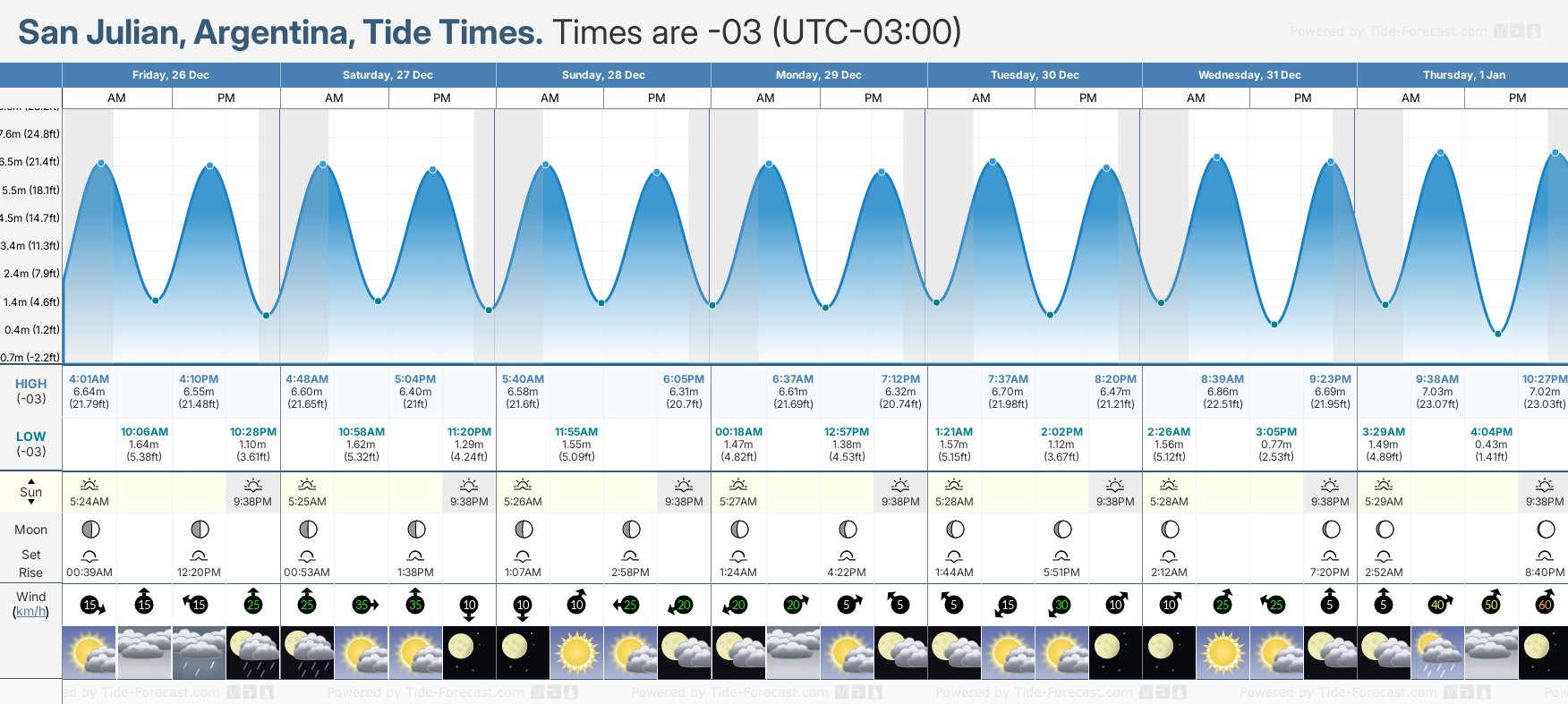 Tide Times for San Julian (tomorrow): Friday 26 December 2025