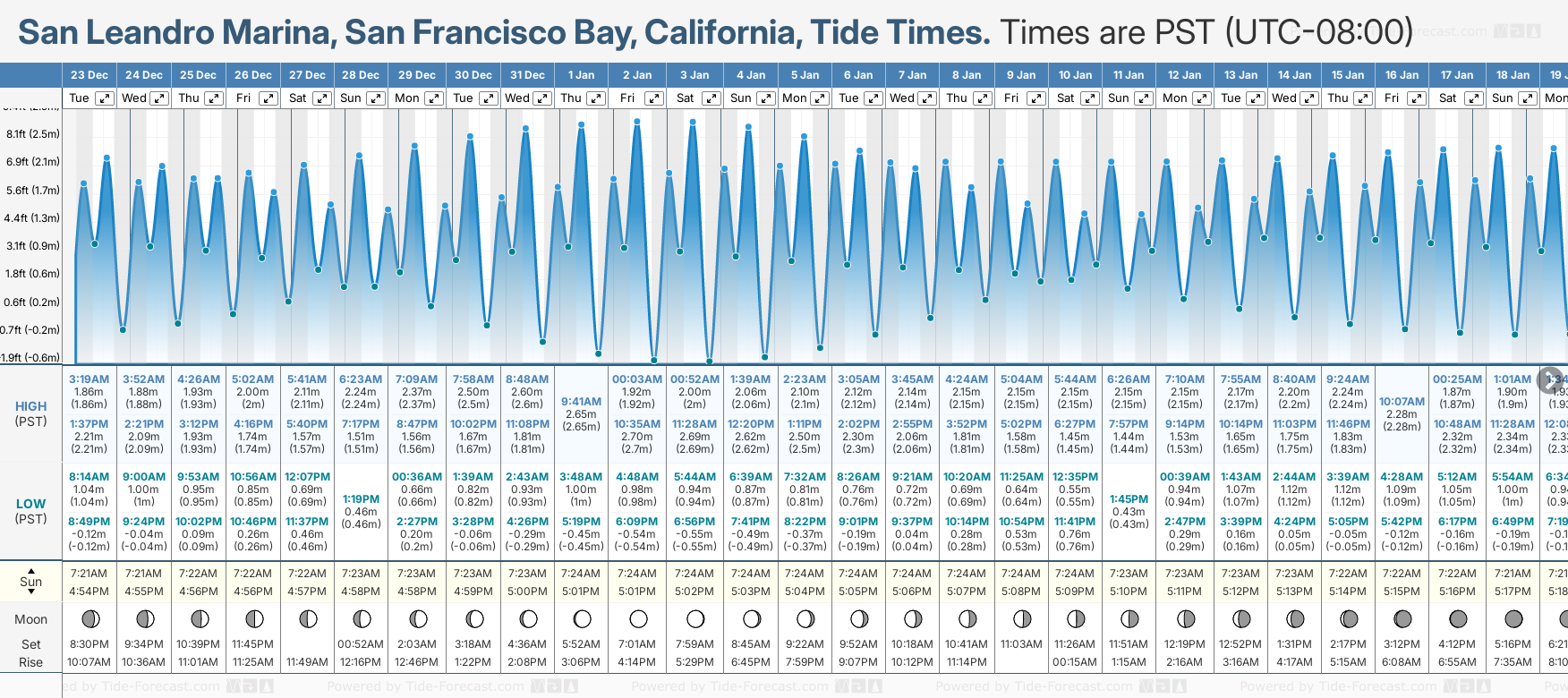 Today's tide times for San Leandro Marina, San Francisco Bay, California