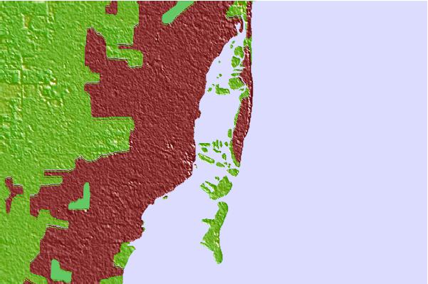 Use this relief map to navigate to tide stations, surf breaks and cities that are in the area of San Marino Island, Florida.