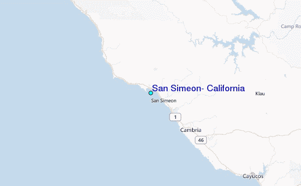 Tide stations located close to San Simeon, California Shoreline around San Simeon, California Roads and rivers around San Simeon, California