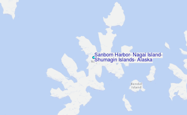 Use this relief map to navigate to tide stations, surf breaks and cities that are in the area of Sanborn Harbor, Nagai Island, Shumagin Islands, Alaska.