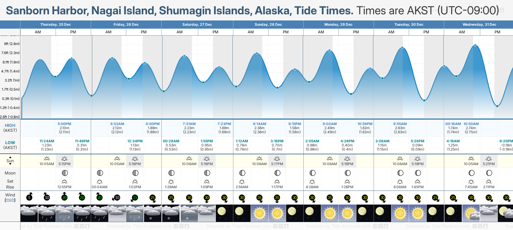 Today's tide times for Sanborn Harbor, Nagai Island, Shumagin Islands: Thursday 25 December 2025