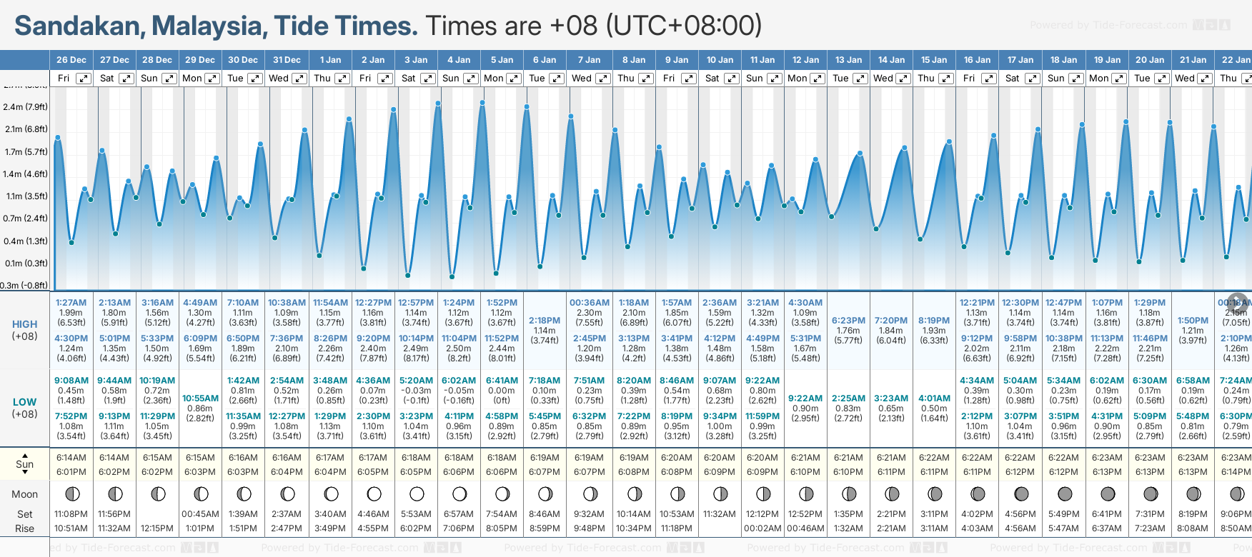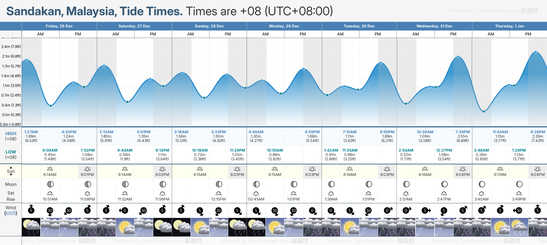 Tide Times for Sandakan (tomorrow): Friday 26 December 2025