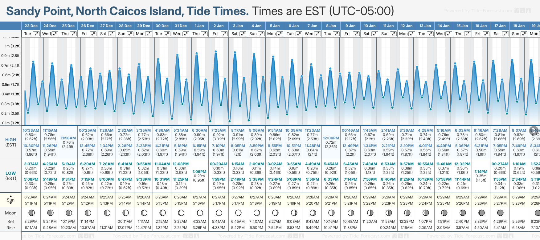 December and January Tide charts for Sandy Point, North Caicos Island: The tide charts below show the height, time and date of high and low tides for the next 30 days.