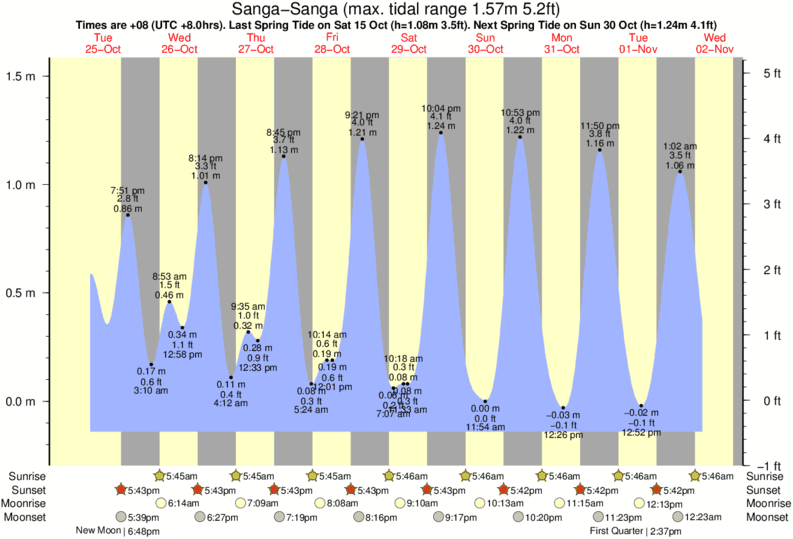Tide Times are PST (UTC +8.0hrs). Last Spring High Tide at Sanga-Sanga was on Sun 07 Dec (height: 1.45m 4.8ft). Next high Spring Tide at Sanga-Sanga will be on Mon 22 Dec (height: 1.24m 4.1ft).