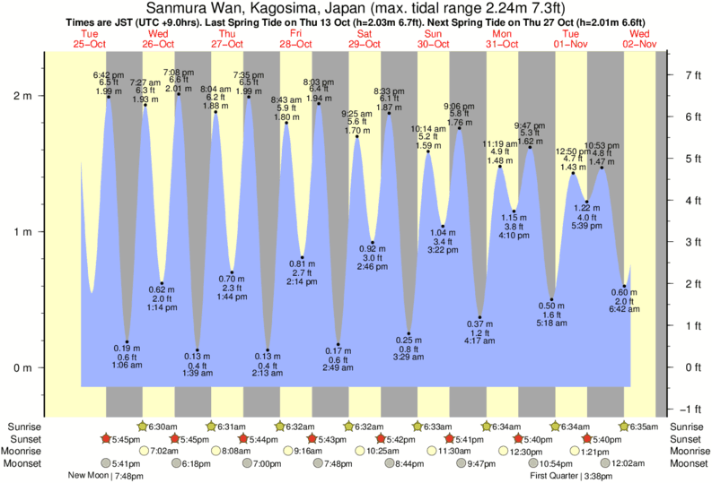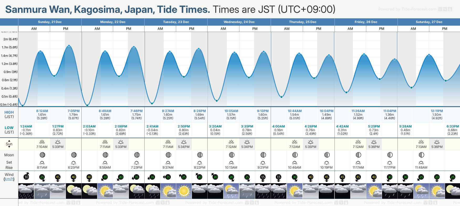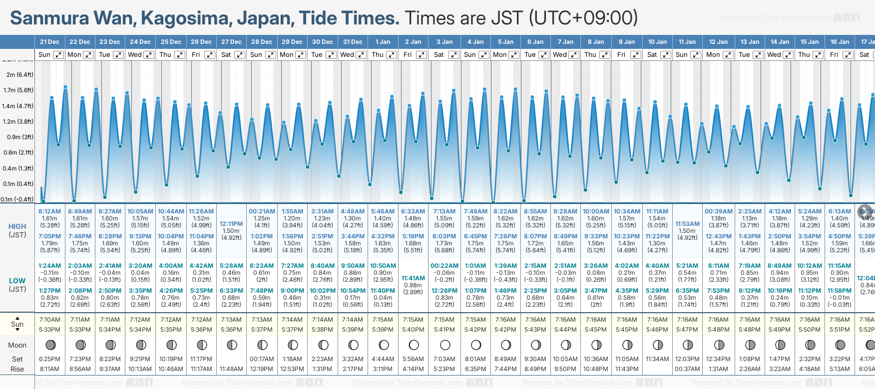 Today's tide times for Sanmura Wan, Kagosima, Japan