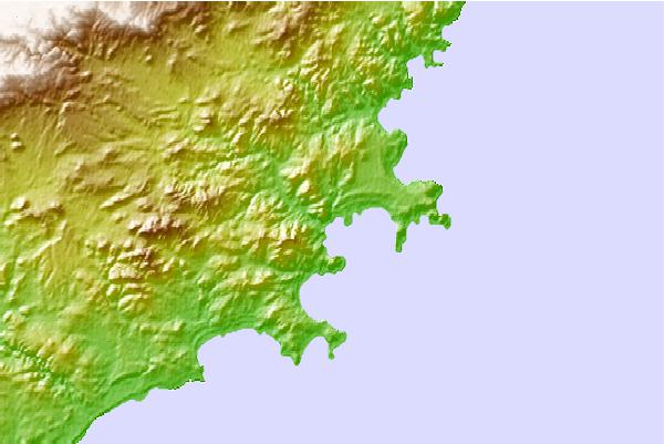 Use this relief map to navigate to tide stations, surf breaks and cities that are in the area of Santa Elena, Argentina.