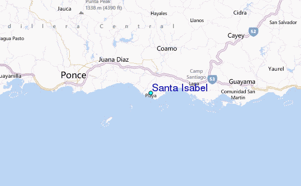 Use this relief map to navigate to tide stations, surf breaks and cities that are in the area of Santa Isabel.