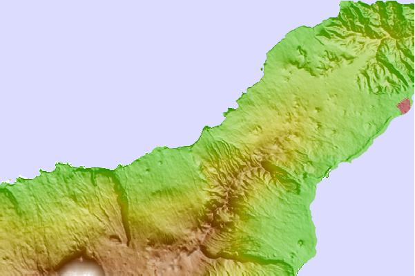 Use this relief map to navigate to tide stations, surf breaks and cities that are in the area of Santa Ursula.