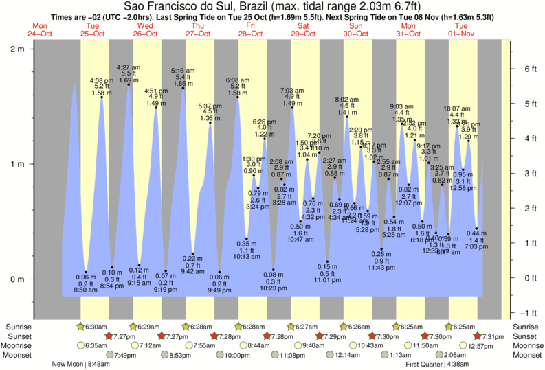 Tide chart for Sao Francisco do SulShowing low and high tide times for the next 30 days at Sao Francisco do Sul. Tide Times are -03 (UTC -3.0hrs).