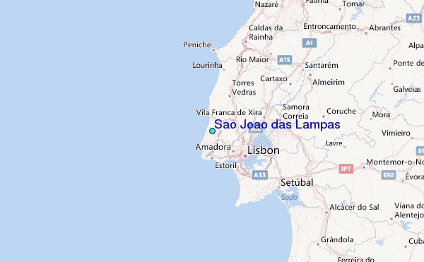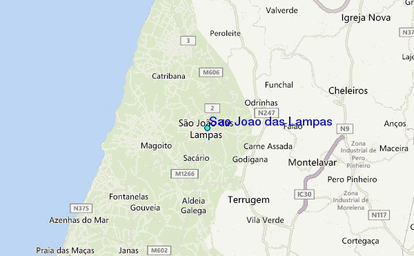 Use this relief map to navigate to tide stations, surf breaks and cities that are in the area of Sao Joao das Lampas.