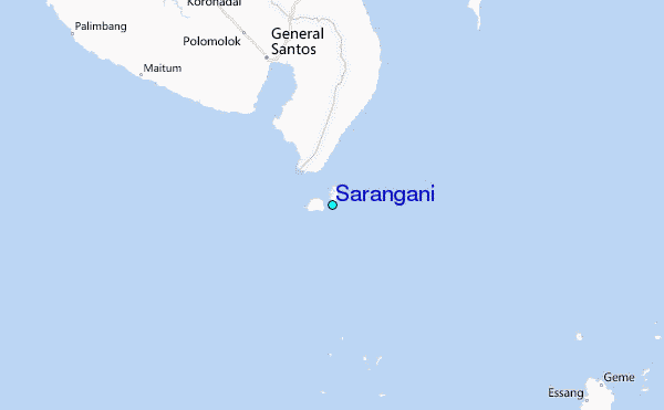 Use this relief map to navigate to tide stations, surf breaks and cities that are in the area of Sarangani.